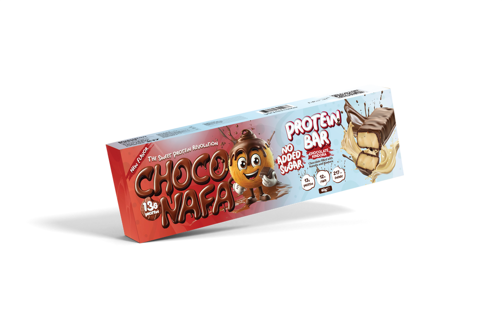 لوح بروتين شوكو نافا من كيندورا هو وجبة خفيفة غنية بالبروتين ومغطاة بالشوكولاتة، مصممة للأفراد النشطين الذين يرغبون في تناول وجبة لذيذة وغنية بالبروتين تدعم التمارين الرياضية والطاقة اليومية.