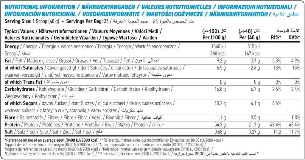 هذه ليست وجبة بروتين عادية. فالمزيج المدروس من مركز بروتين الحليب وكازينات الكالسيوم يُنتج تركيبة فريدة من الأحماض الأمينية تجمع بين دعم سريع ومستدام للعضلات. والنتيجة هي عجينة كوكيز لا تتميز بمذاقها الشهي فحسب، بل تُلبي أيضًا الاحتياجات الغذائية اليومية - فهي مثالية لتزويد الجسم بالطاقة اللازمة للتمارين الرياضية، والمساعدة على التعافي، وكبح الرغبة الشديدة في تناول الطعام ليلاً دون التأثير على الأهداف.