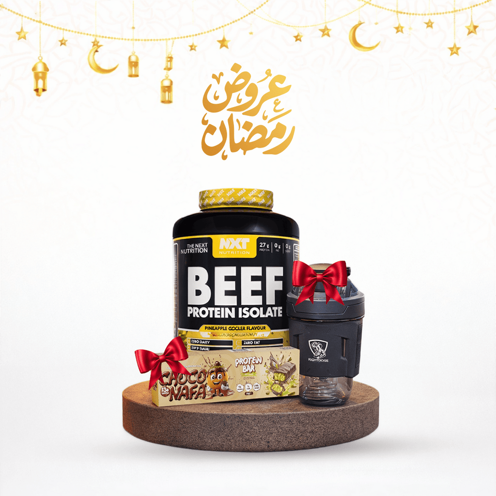 مجموعة بروتين اللحم البقري الأساسية لرمضان من شركة "ذا نيكست نيوتريشن" هي مجموعة بروتين خالية من منتجات الألبان، ومناسبة لنظام باليو الغذائي، ومصممة خصيصًا للرياضيين الذين يتدربون أثناء الصيام. تجمع هذه المجموعة بين بروتين لحم بقري معزول عالي الجودة ووجبات خفيفة غنية بالطاقة لدعم بناء العضلات الخالية من الدهون، وتسريع عملية الاستشفاء، والحفاظ على مستوى طاقة ثابت من السحور إلى الإفطار.